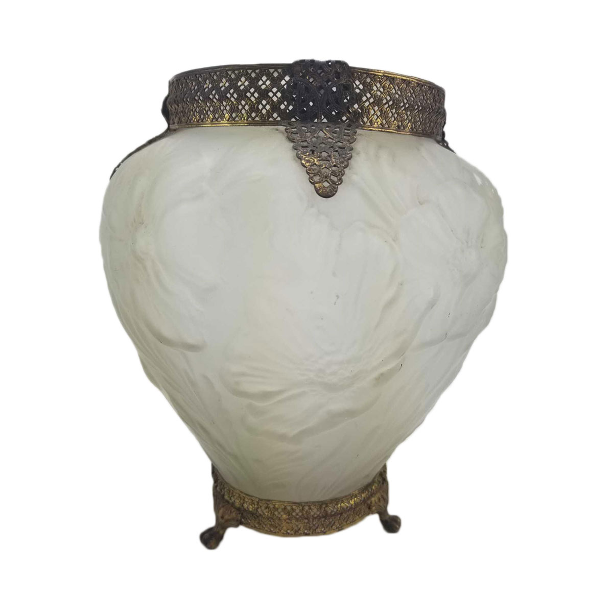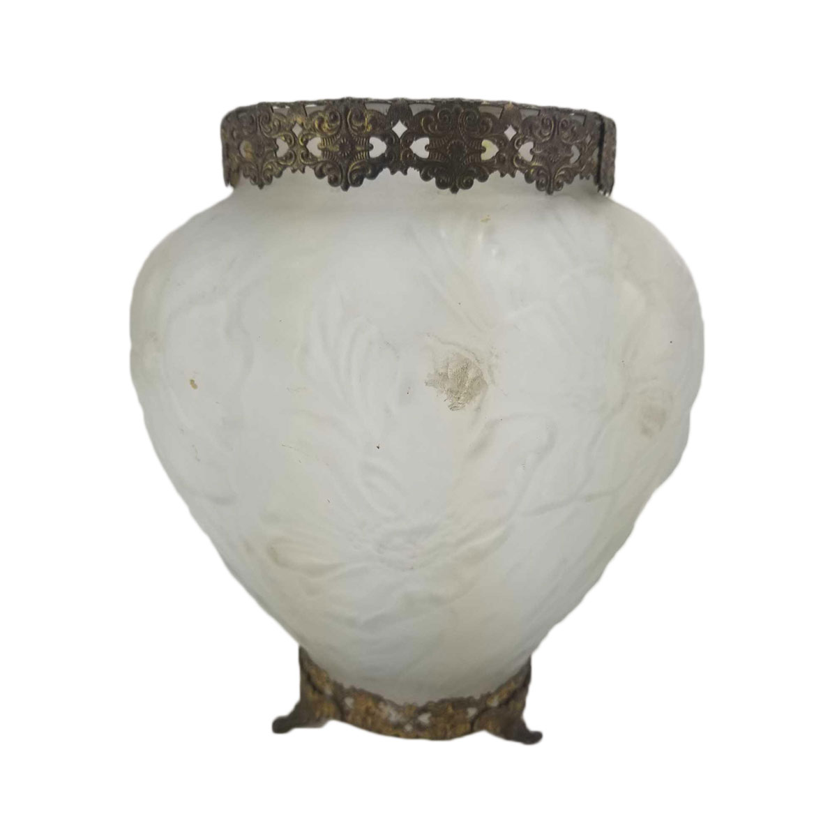 • 09/08/2018 10:00 AM 09/08/2018 01:00 PM America/New_York Two vintage frosted glass vase with gilded brass overlay. Lot: 419