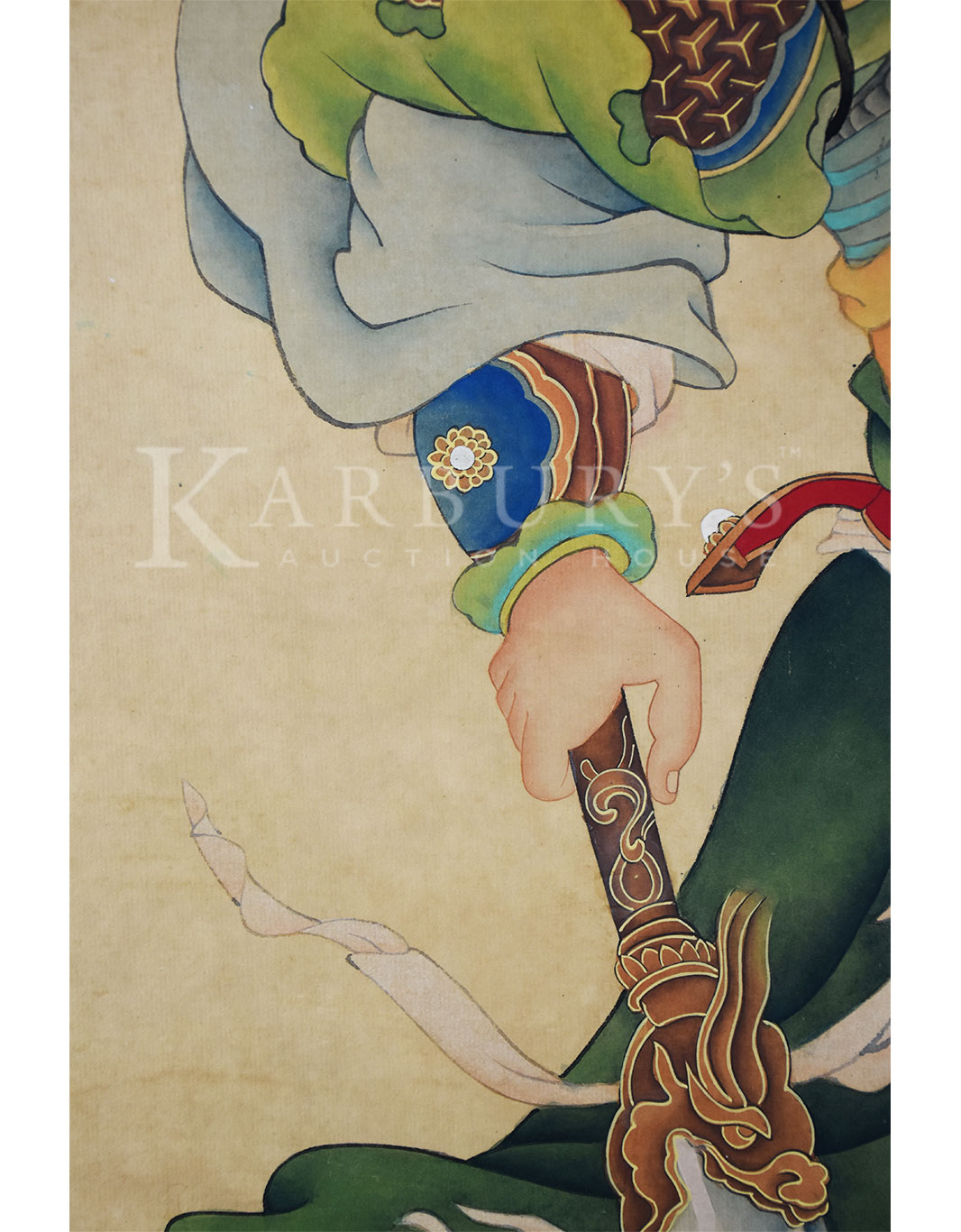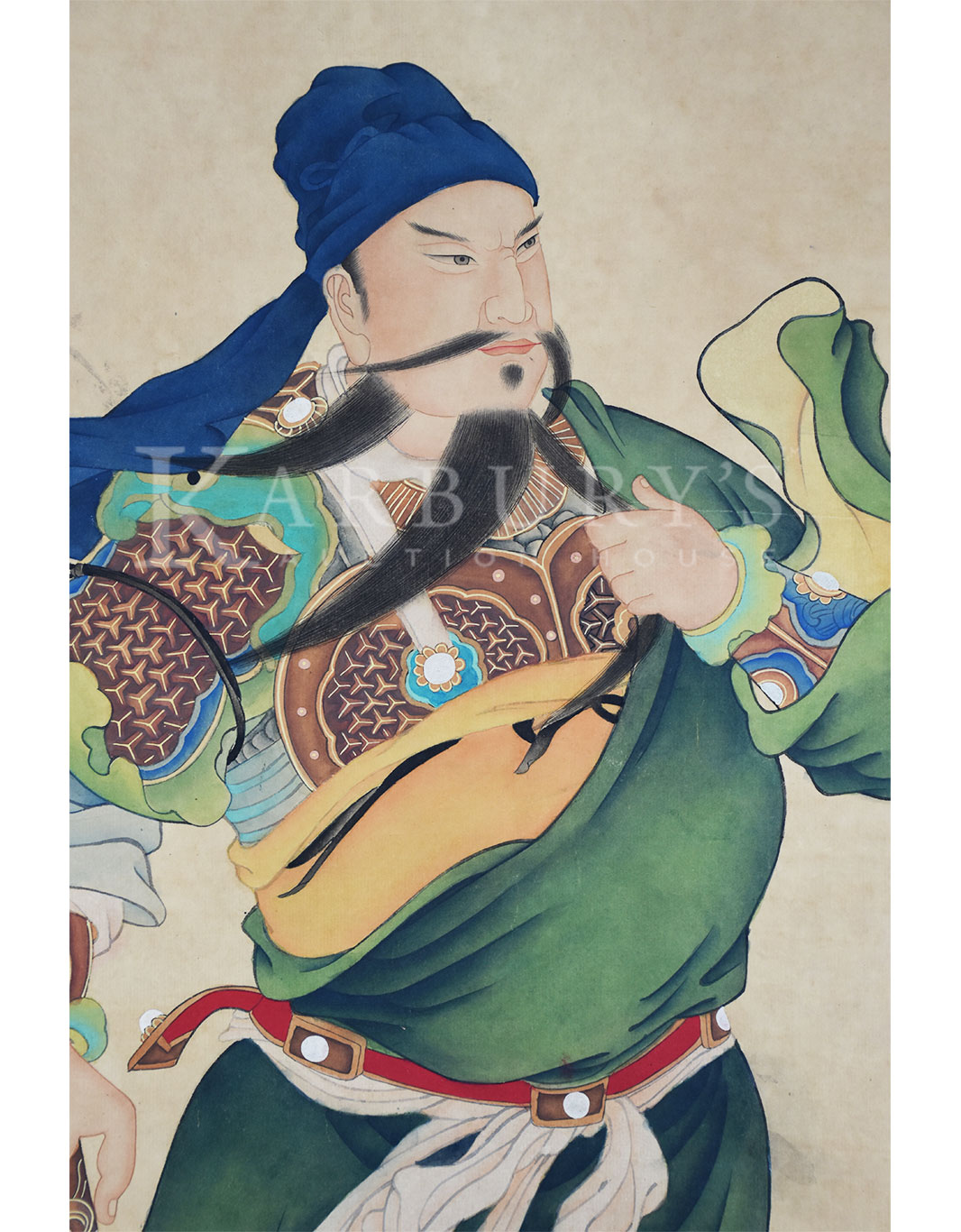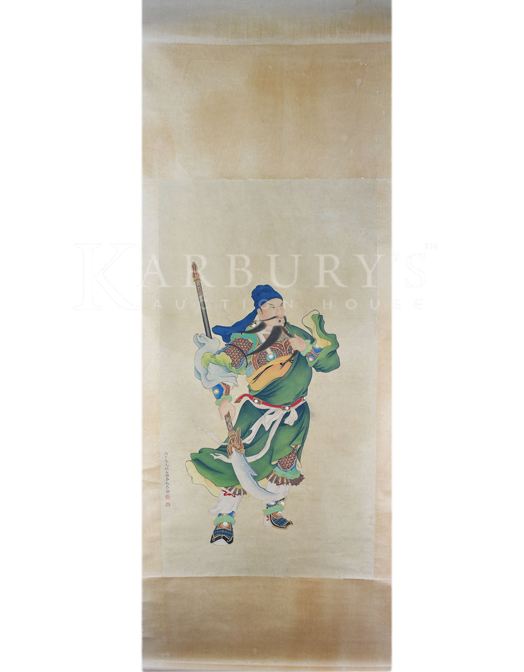 • 07/22/2017 06:00 PM 07/22/2017 08:00 PM America/New_York Yao Wenhan (Qing Dynasty, 18th century) Portrait of Guan Yu (Guan Gong) Lot: 126 Yao Wenhan (Qing Dynasty, 18th century) Portrait of Guan Yu (Guan Gong) Hanging Scroll, ink and color on paper, signed Yao Wenhan and inscribed with two seals of the artist. Size: 78 x 29 3/4 in. (198 x 75 cm.) 姚文瀚(公元18世纪)关公图 设色纸本 立轴 款识:丙申春月臣姚文瀚奉敕恭绘 钤印:臣(朱文)瀚(阴文) 姚文瀚 (公元18世纪),号濯亭,北京人,生卒年不详。乾隆时供奉内廷,工道释、人物、山水、界画,《石渠宝笈》著录其曾作《仿清明上河图》卷,文瀚于群工角艺之时,胸具别裁,画成缩本,乾隆喜而题诗并注:“此卷较择端原本尺幅纵横倍减,而临摹毕肖,人物益小,尤见精能。”乾隆十七年(1752)尝作《仿宋人文会图》卷,二十六 (1761)《紫光阁锡宴图》卷。传世作品有《四序图》 《观音像》 《文殊像》。 Karbury's Karbury's Karbury's false MM/DD/YYYY