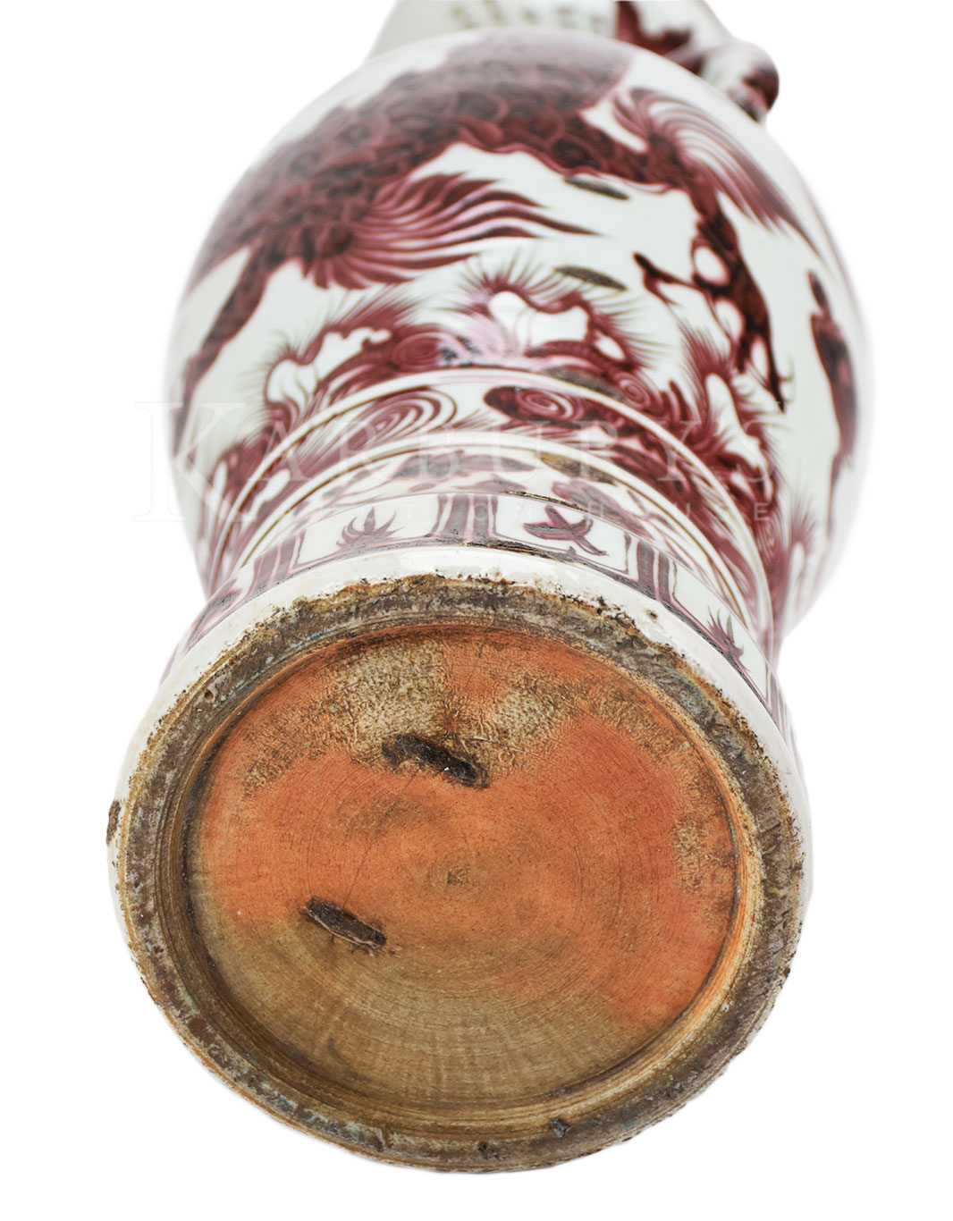 釉里红象耳盘口瓶