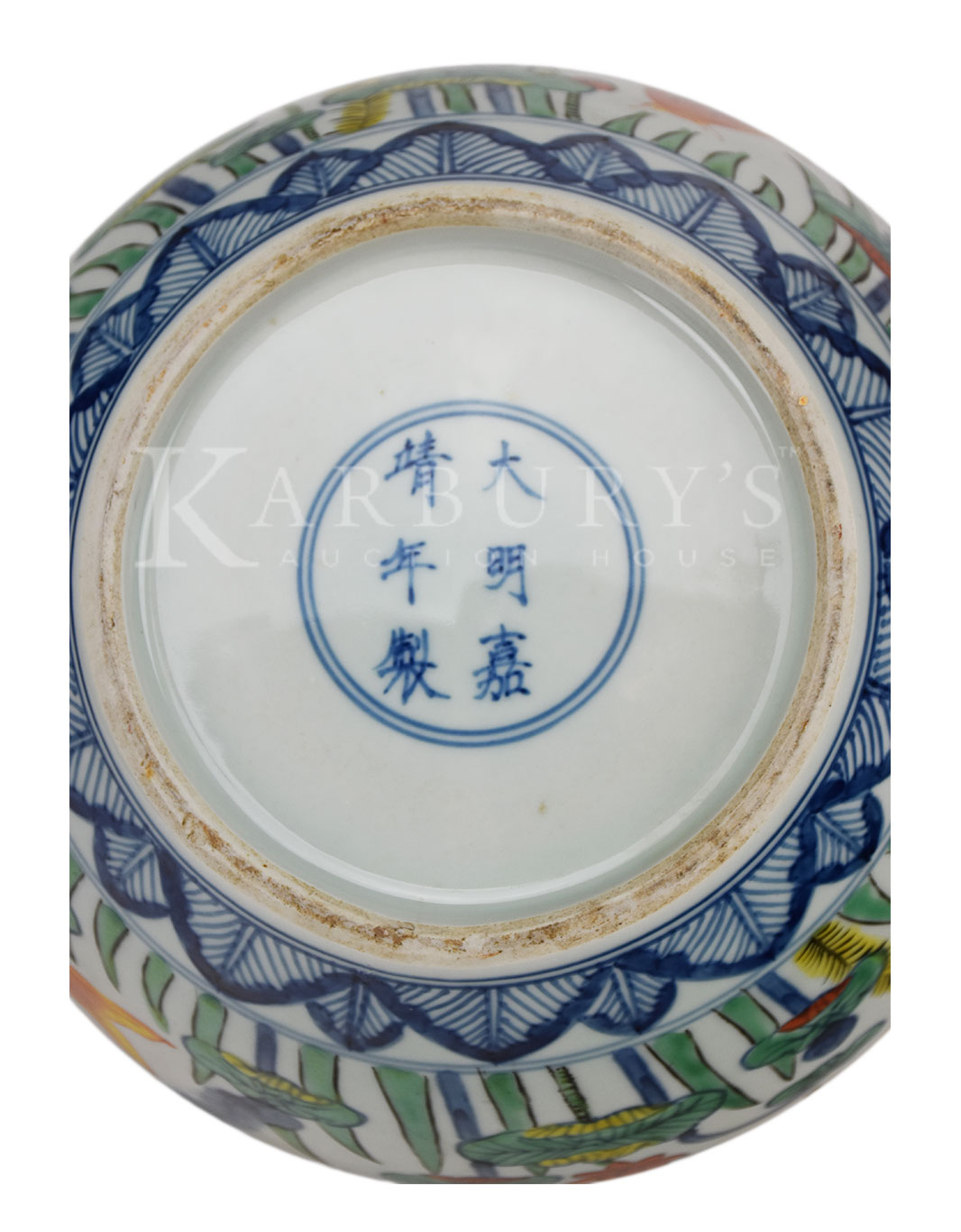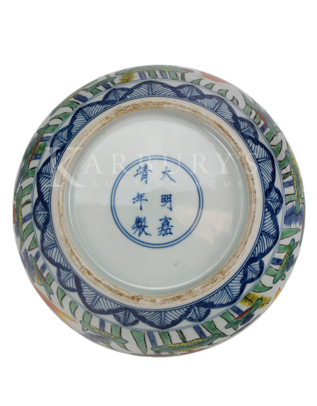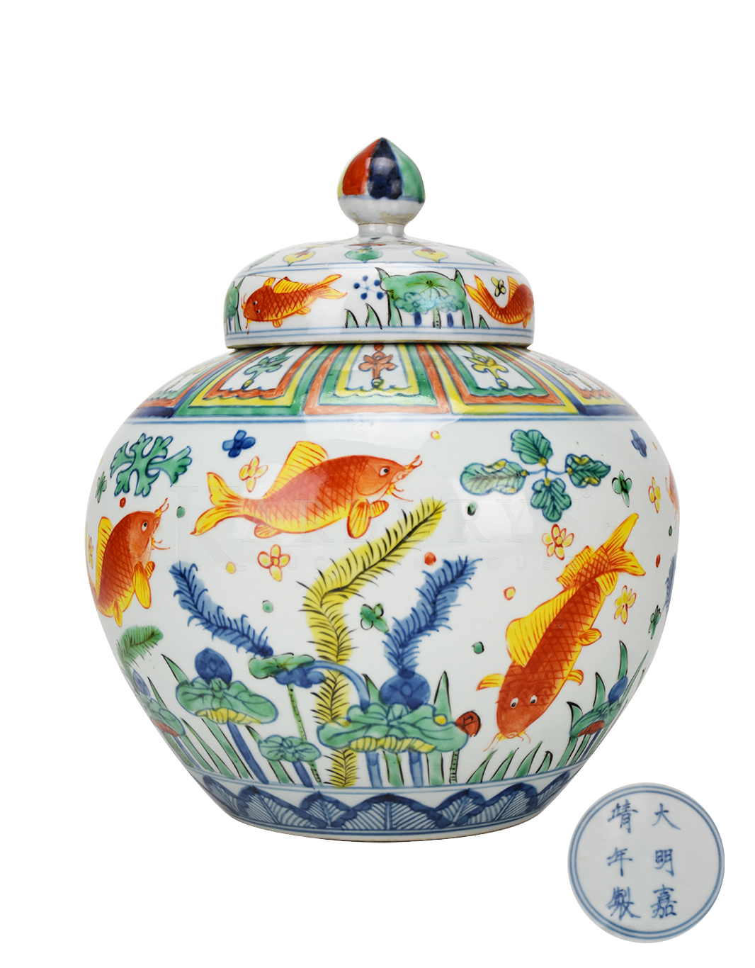 07/22/2017 06:00 PM07/22/2017 08:00 PMAmerica/New_YorkA Wucai Fish Jar with Cover with a Jiajing Mark Lot: 150