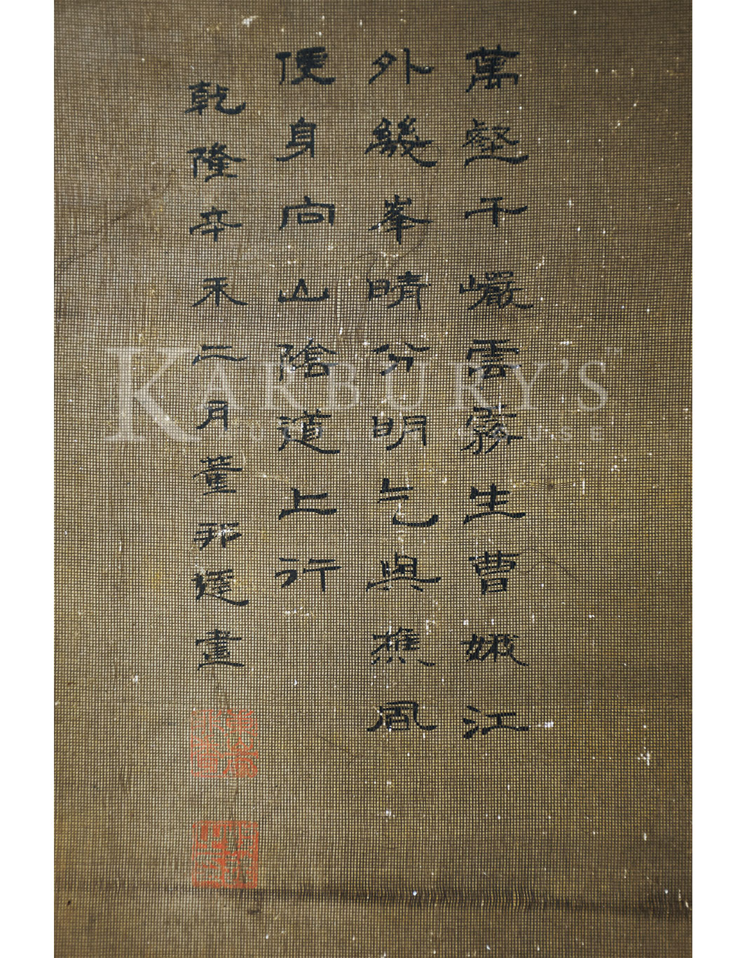 董邦达(1696-1769),清代官员、书画家。字孚存、争存,号东山、非闻,浙江富阳人。雍正十一年进士,乾隆二年授编修,官终礼部尚书,谥文恪。好书、画,篆、隶得古法,山水取法元人,善用枯笔。其风格在娄东、虞山派之间。与董源、董其昌并称“三董”。他的山水画作品水墨疏淡,设色淡雅,用笔轻柔,皴法松秀,文人情趣极浓。董邦达广习历代名家技艺,除吸收董巨皴法及黄公望浅绛画法,还受“清初四王”影响颇深。但与“四王”不同的是,他更加重视绘画的生气,作品既能迎合皇帝喜爱的盛世升平气象,又有文人画家所追求的幽远意境。其画作中年秀润,晚年苍浑,用笔在不生不熟之间,绝无狂废之态。尤其晚年之作沉雄朴茂,极具生拙野逸之趣,所呈现的文人意趣,继承南宗笔墨的野逸疏放,与董源、董其昌异曲同工。他将文人逸气带入宫廷,与清代宫廷职业画家的工丽装饰明显不同,成为当时宫廷中雅文化的代表。