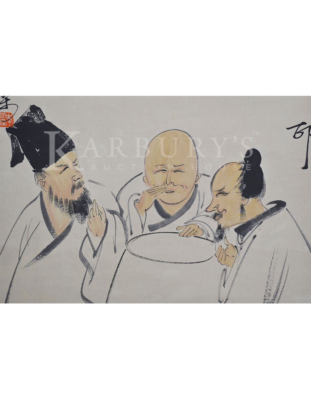 Li Keran (1907-1989) Monk and Two Scholars with Peach Vinegar