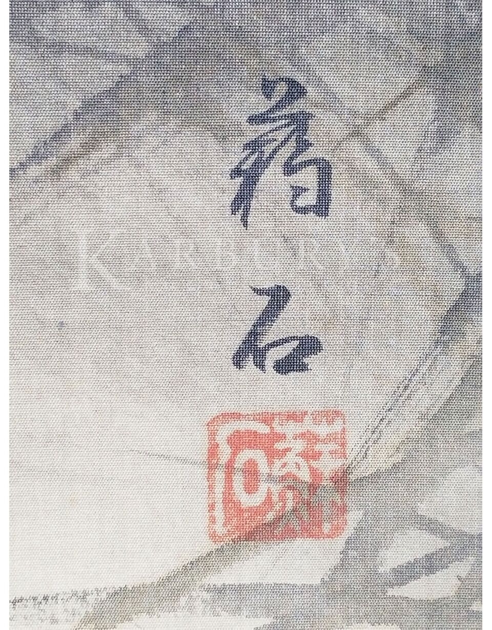 This hanging scroll shows a tiger in a cave, ink and color on silk, signed with one seal of the artist. A tiger generally symbolizes strength, military prowess, power, and energy. Size: 76 1/2 in. (194 cm.) h x 26 in. (66 cm.) w