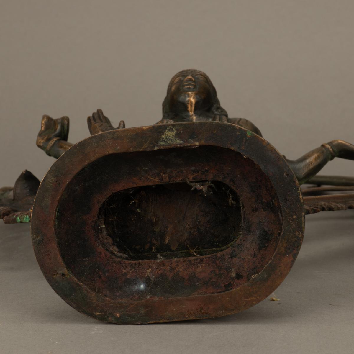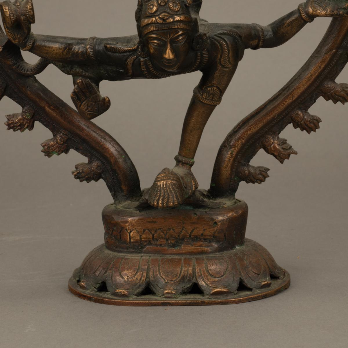 Bronze religious figure of Shiva Nataraja and the figure is balanced upside down on one hand.