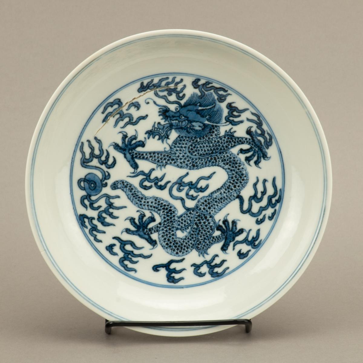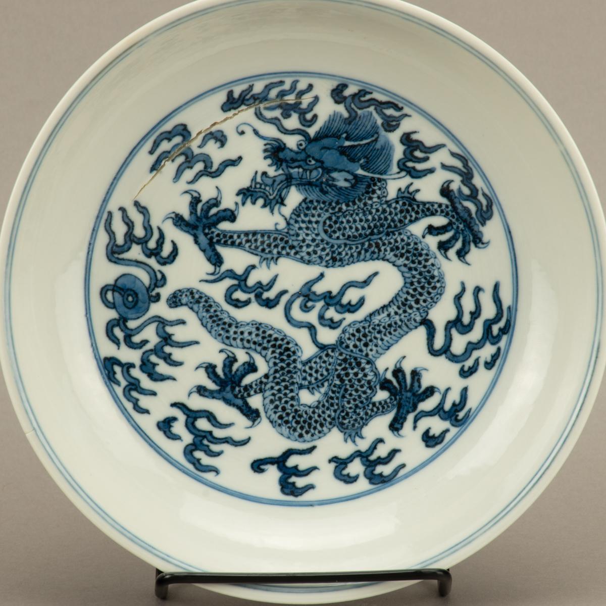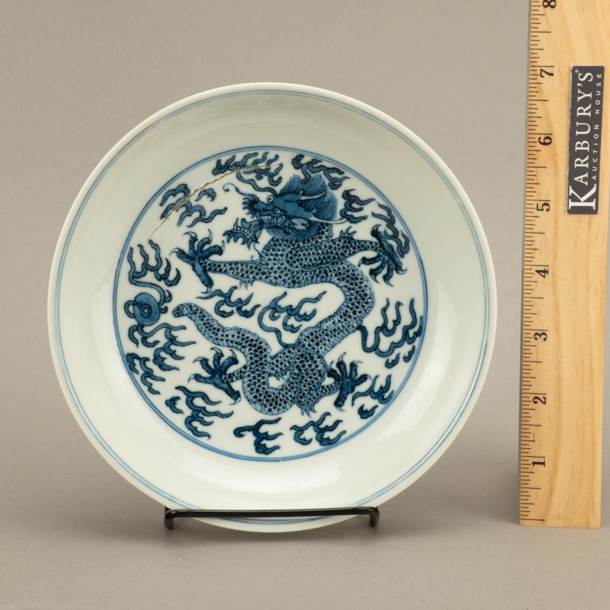 • 09/17/2019 10:30 AM 10/12/2019 02:30 PM America/New_York Blue and White Dragon Dish with Tongzhi Reign Mark Blue and White Dragon Dish with Tongzhi Reign Mark