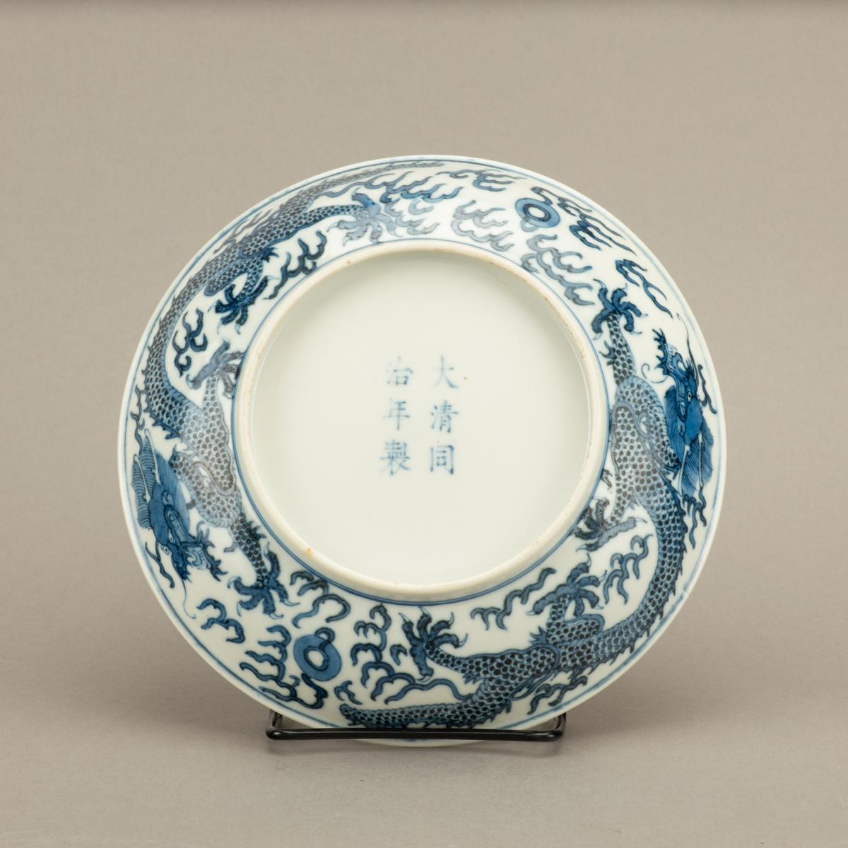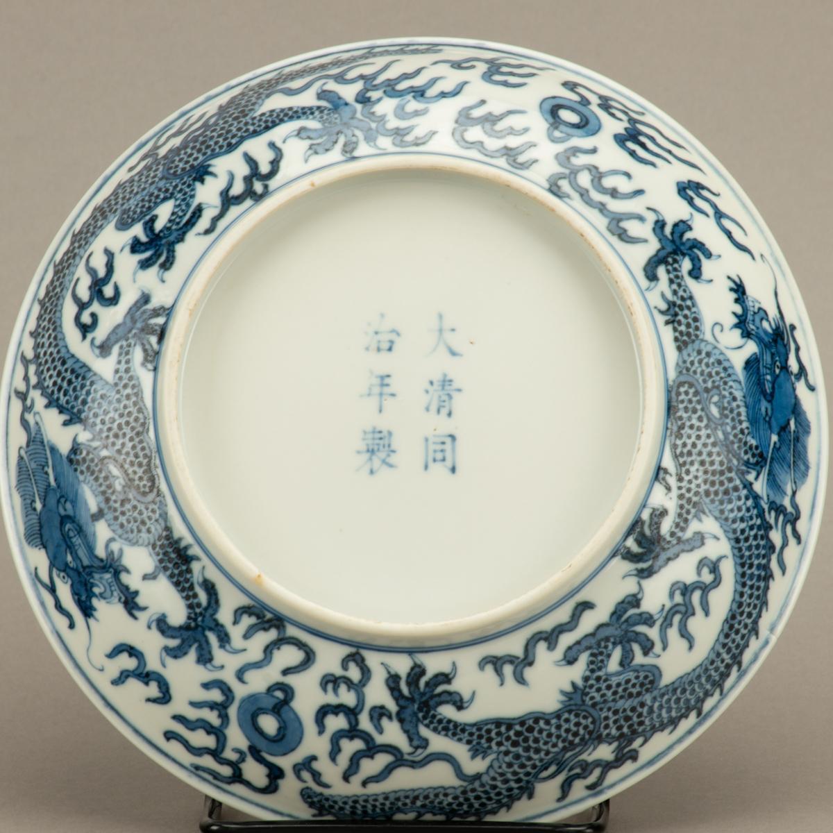 Blue and White Dragon Dish with Tongzhi Reign Mark